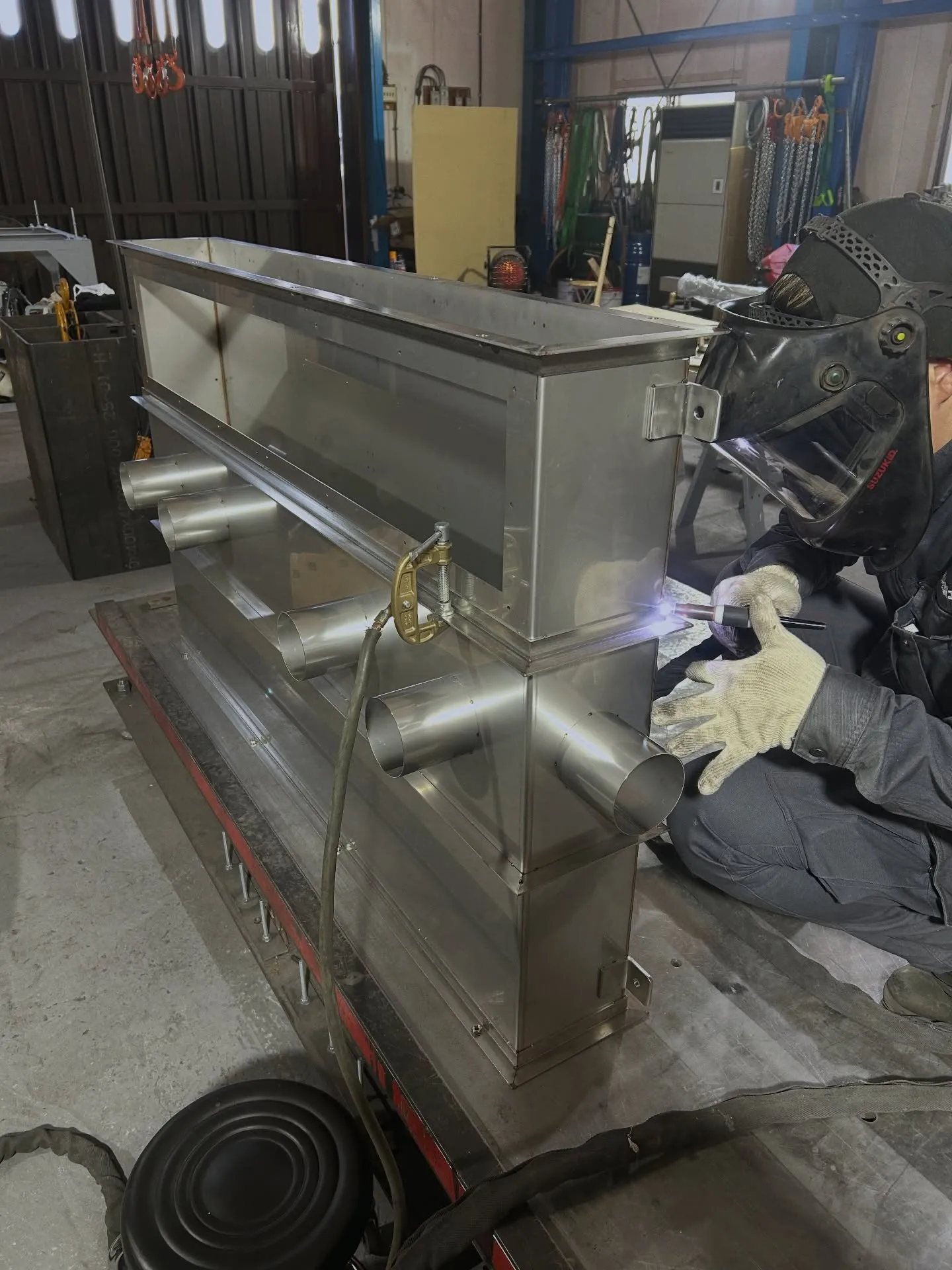 今日の作業 ステンレスのダクトを製作しています💡 #設備 #ステンレス #製缶屋 #ダクト #tig
